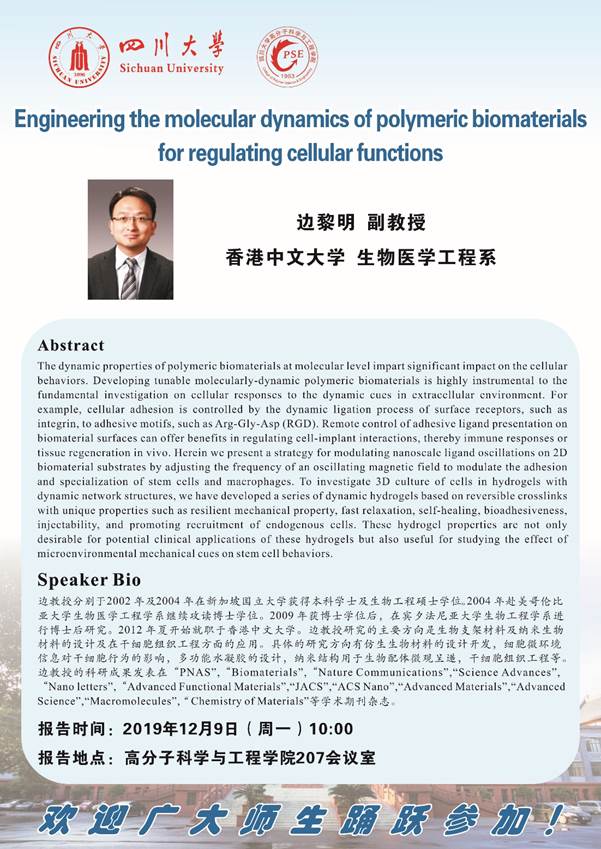 Topic: Engineering the molecular dynamics of polymeric biomaterials for regulating cellular functions