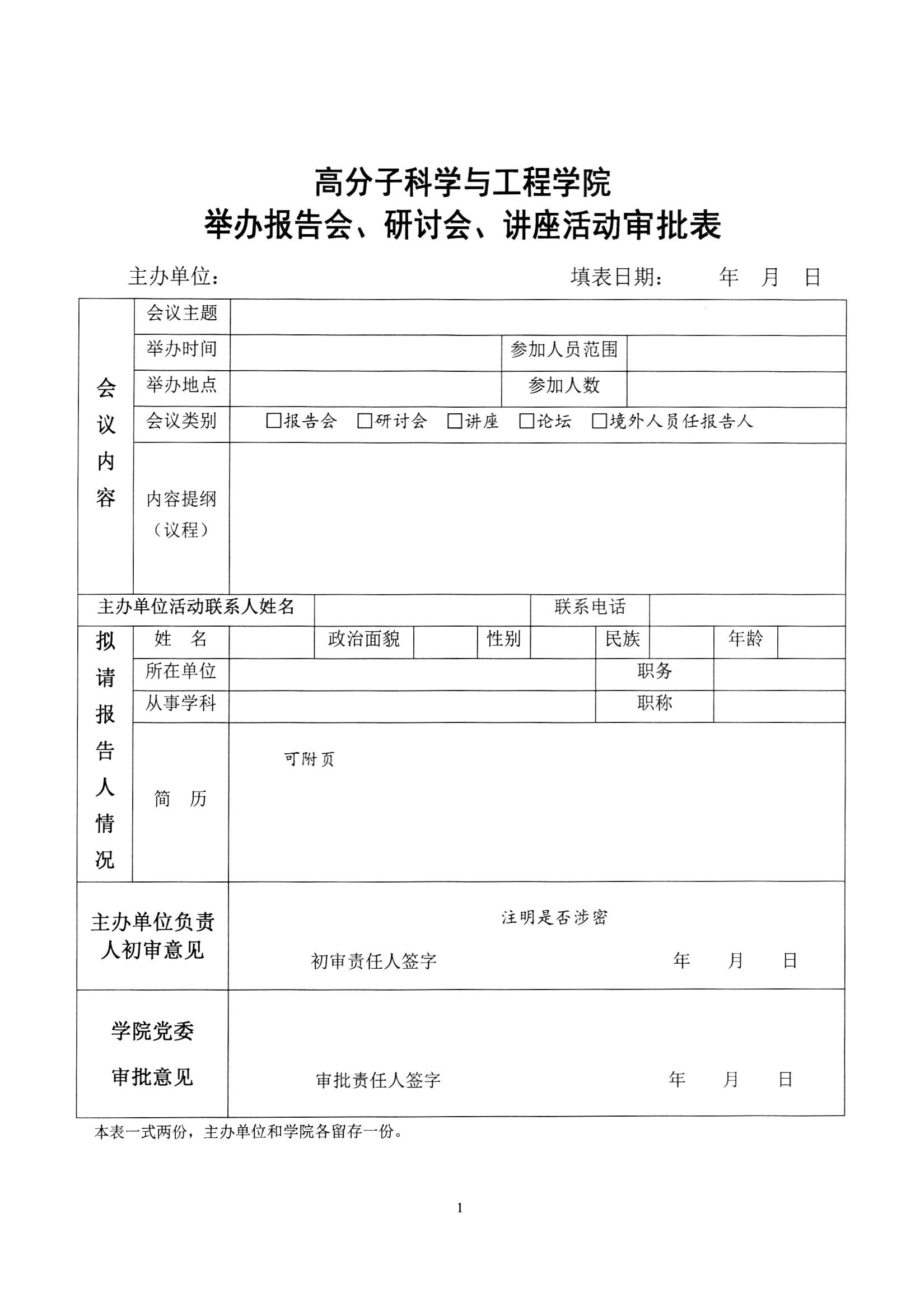 高分子黄色网址大全 举办报告会、研讨会、讲座活动审批表