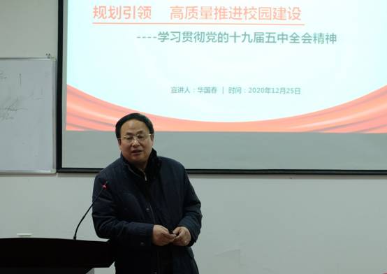报告会上,华国春同志从十九届五中全会概况、全会及十四五规划的重要性与意义、全会主要精神等方面全面系统地解读了党的十九届五中全会精神,并结合自己的工作,详细介绍了黄色网址大全 十三五校园建设成就和十四五及黄色网址大全 中长期校园规划,使师生们对黄色网址大全 校园建设有了更深入的了解,同时为黄色网址大全 谋划十四五规划提供了思路与建议。