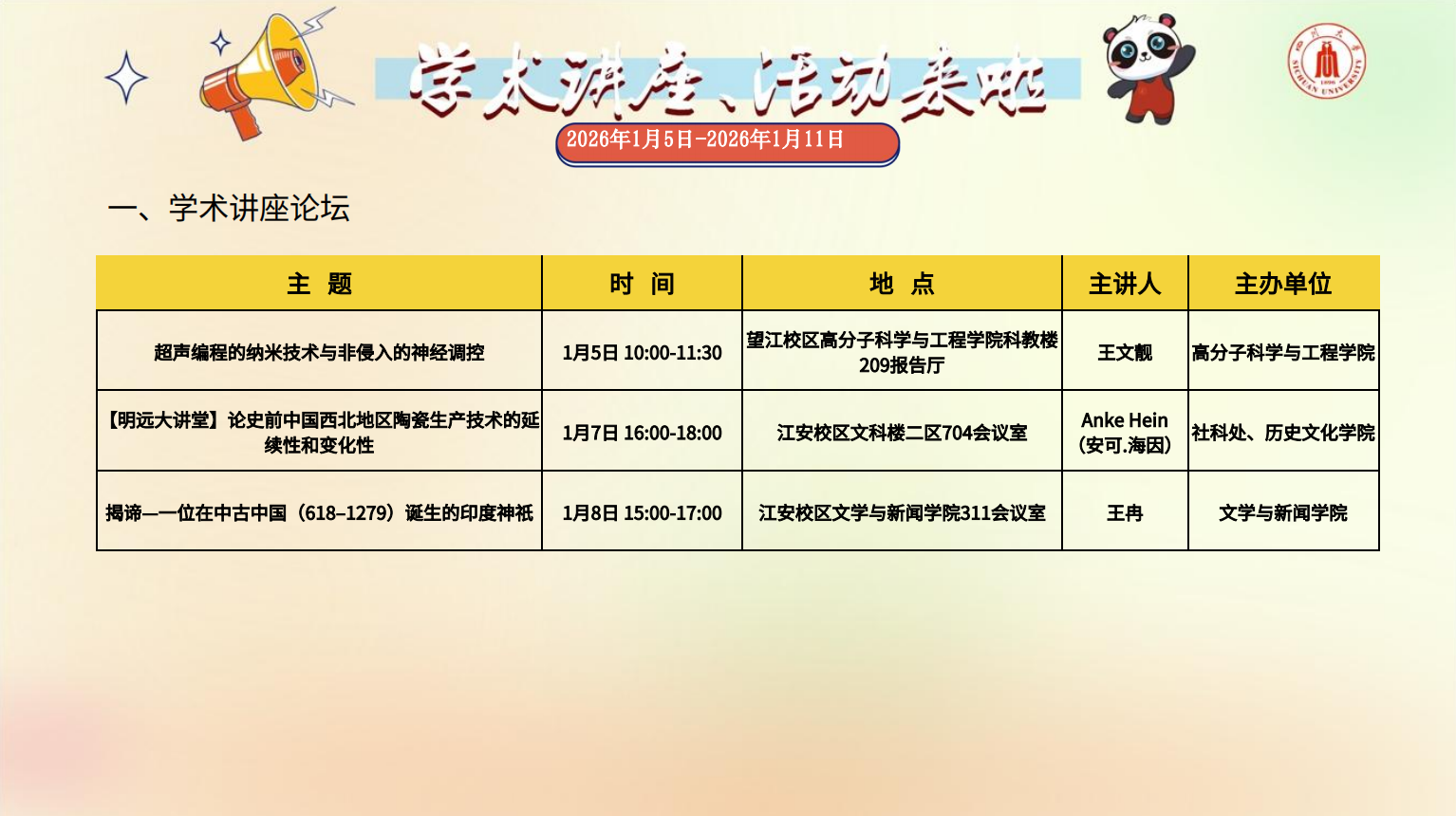 学术讲座预告(2026年1月5日-2026年1月11日)